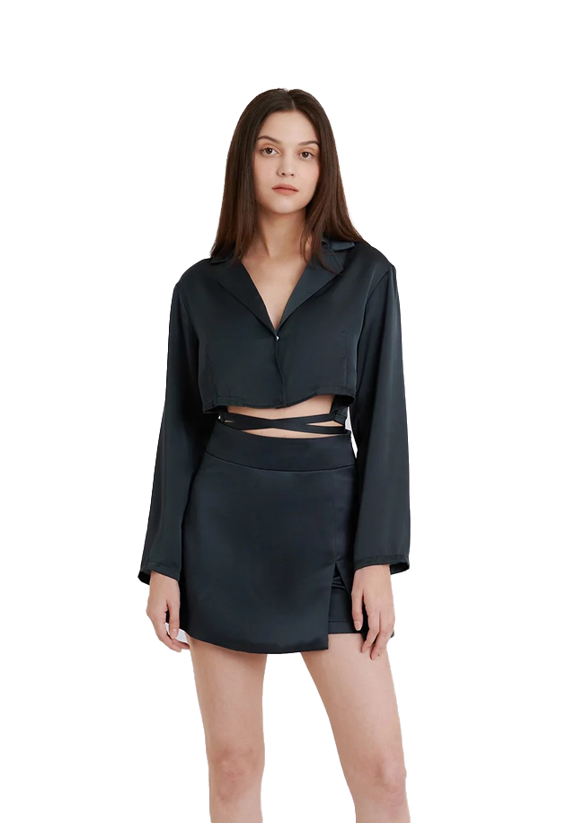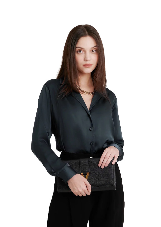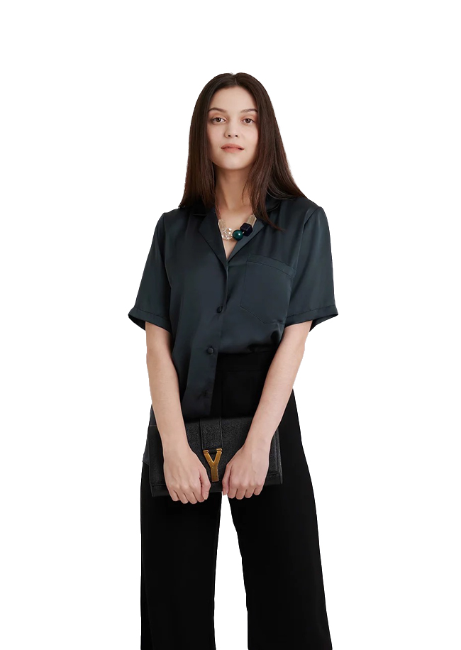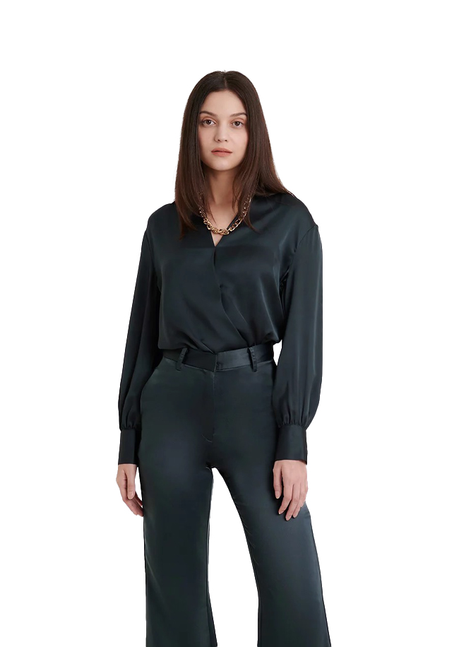 CAMILO SATIN SHIRT EMERALD SATIN SILK