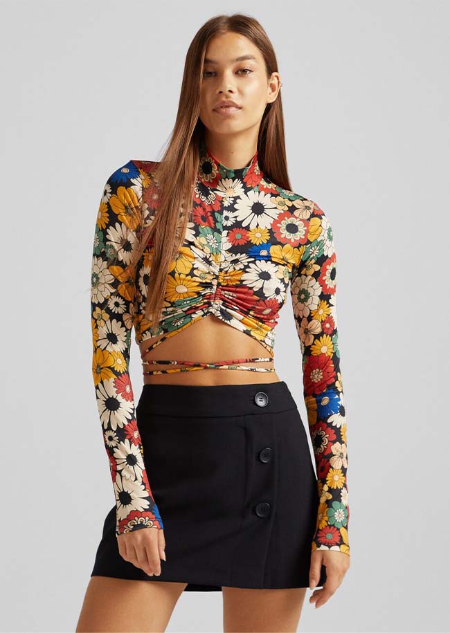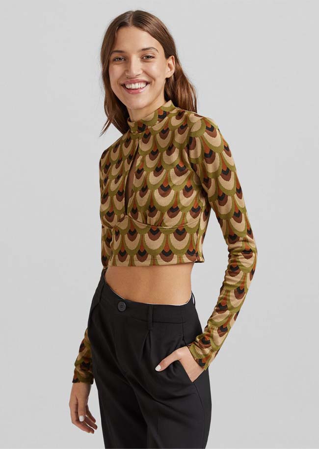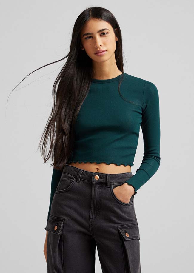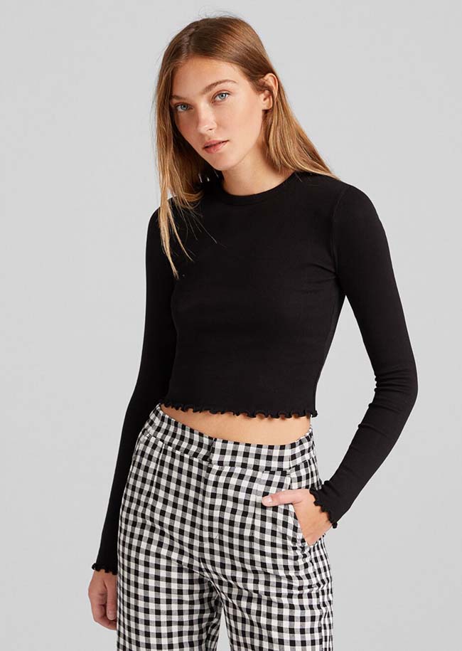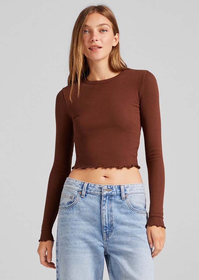 Atasan lengan panjang dengan bagian depan dikerut